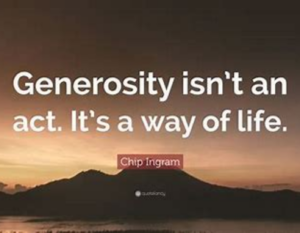 Andy LePage reminds us:  “Generosity is not only about what we give, but also about how we give: with love, humility, and without expectation of reward. It is a virtue that encourages kindness, empathy, and the cultivation of a meaningful life through selfless action. It almost always leads to compassion.”